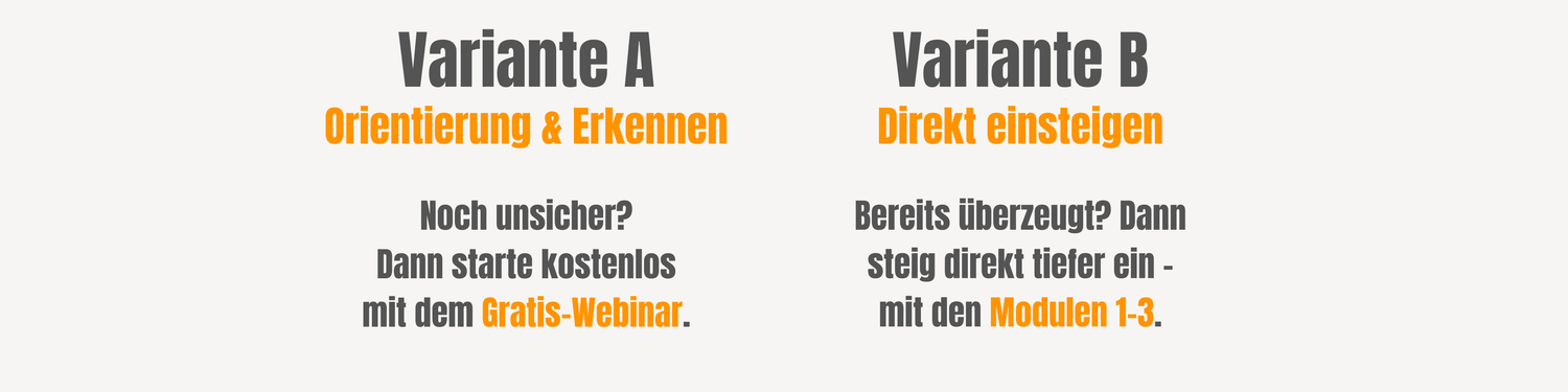 Ja. Sei es nach der Teilnahme am Gratis-Webinar oder den beiden Modulen #1 und #2.